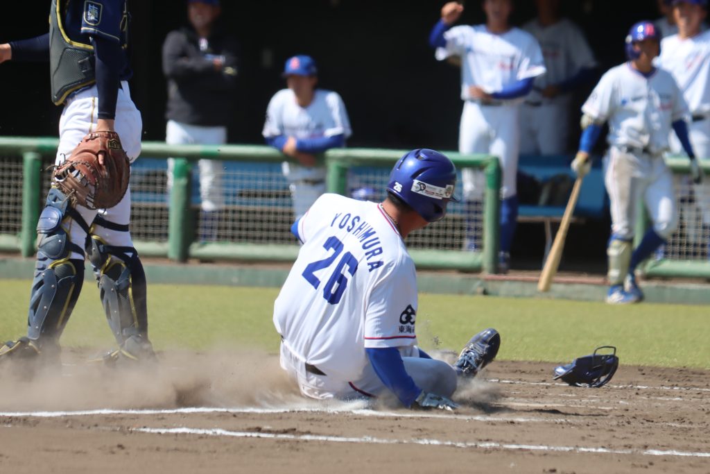 0 岡田外野手が送りバントを決め、二塁走者の吉村内野手が三塁へ進塁
