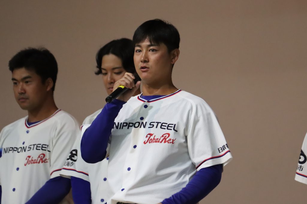 「本大会でも積極的に仕掛け主導権を握り、REXらしくハツラツと戦ってまいります。東海市ふるさと大使として・名古屋製鉄所の代表チームとして、また吹奏楽・応援団の皆さんの力強いエールを力にかえて必ず初戦を勝ち抜きたいと思います!」