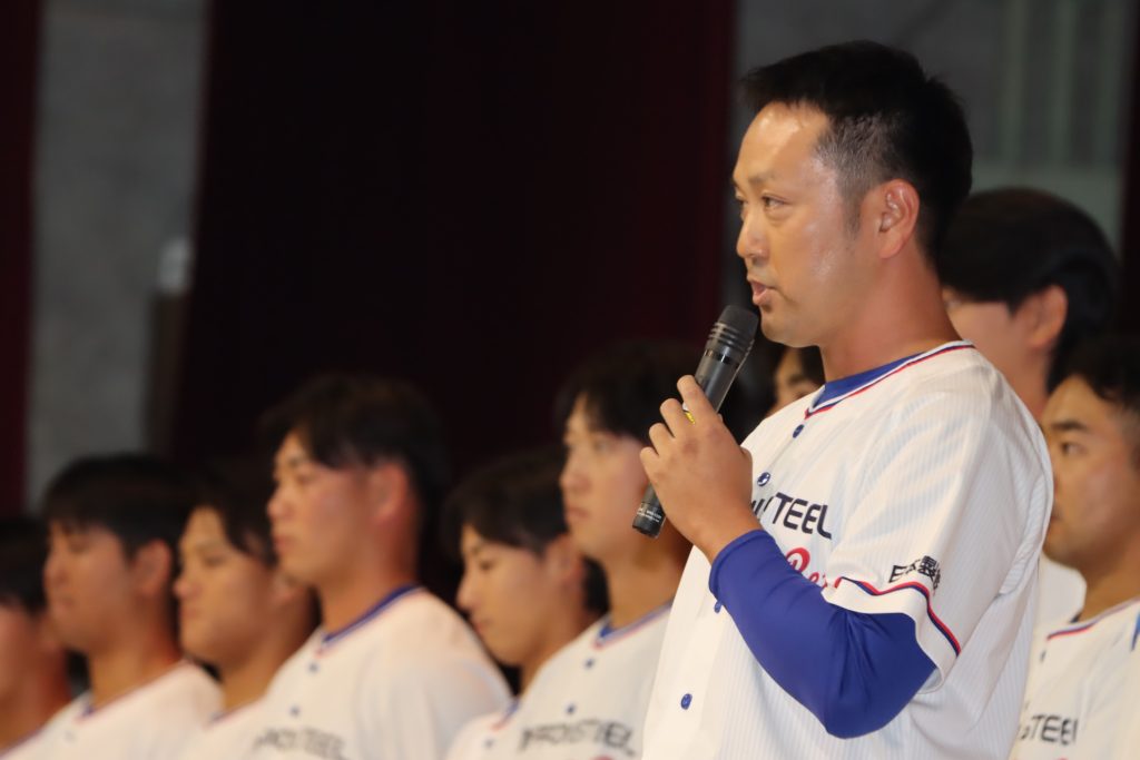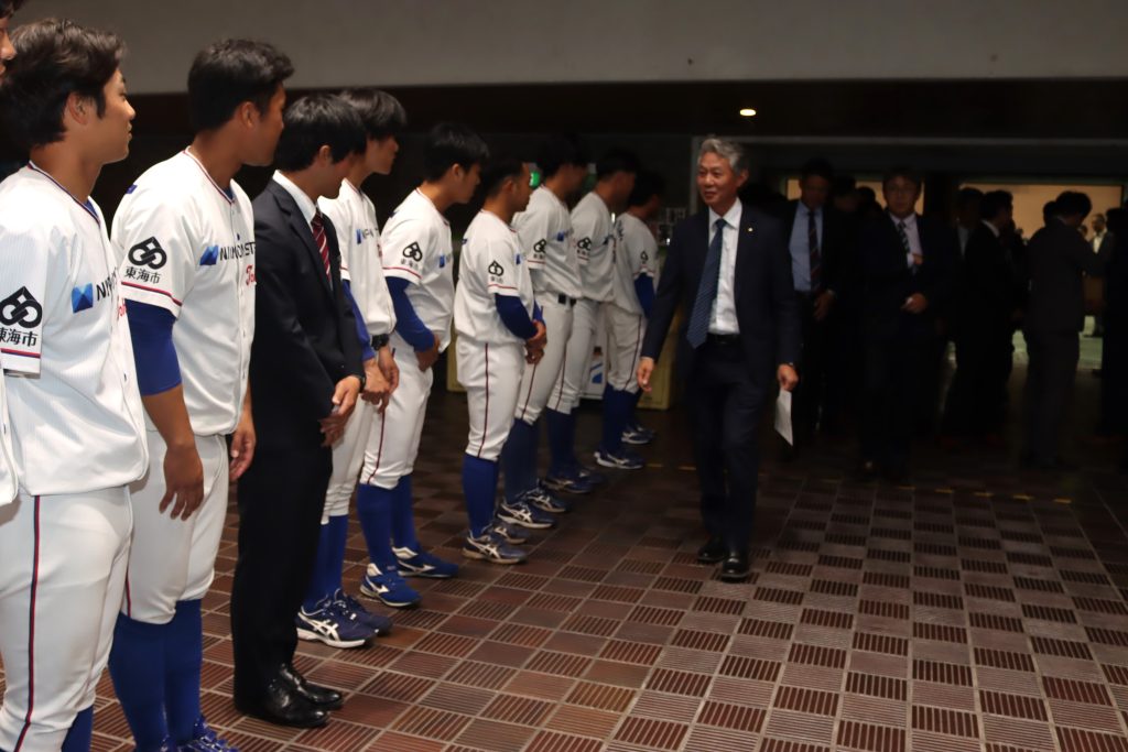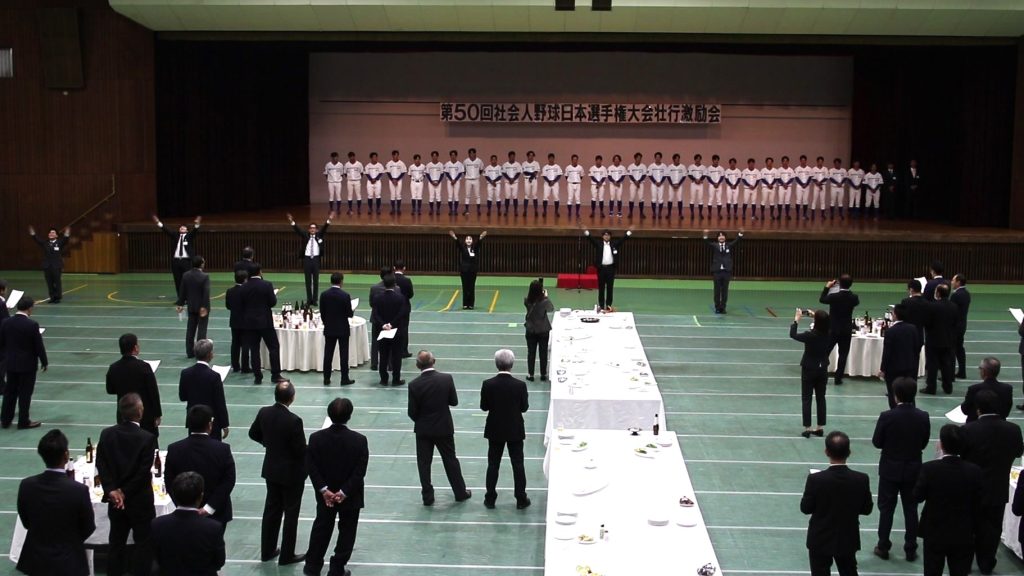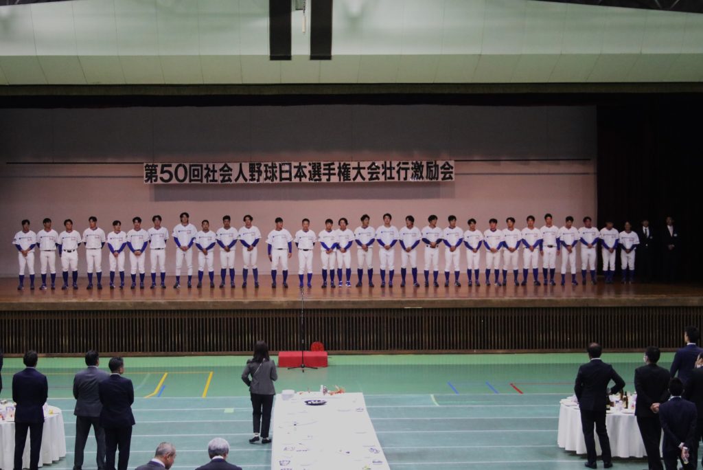 10月24日(金)に日本製鉄名古屋体育館にて、東海市 星川副市長はじめ市関係者、製鉄所関係者、支援企業の方々、選手職場の方々等総勢約230名をお招きし、第50回社会人野球日本選手権大会壮行激励会を開催いたしました。