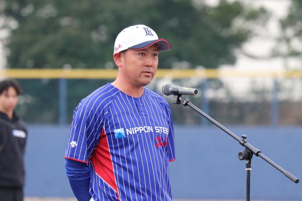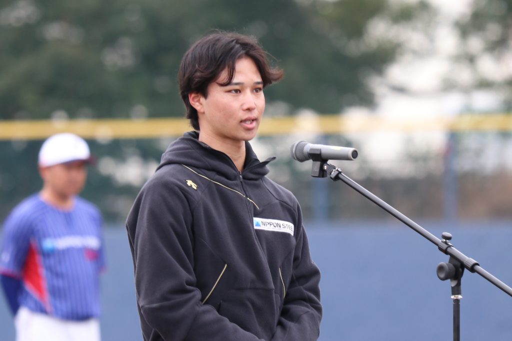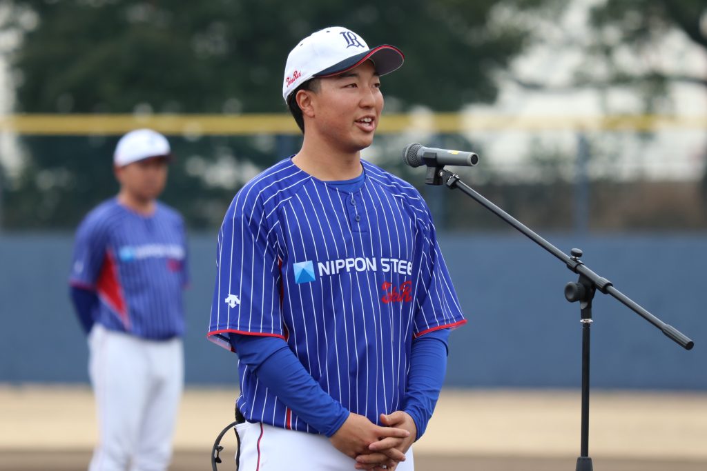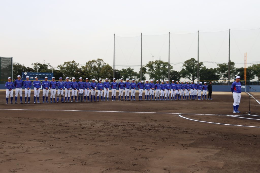 2026年の球場開きとして、2/24(火)中部大学とのオープン戦の前に監督挨拶・新人移籍選手紹介・名古屋製鉄所 平光所長の始球式を行いました。
