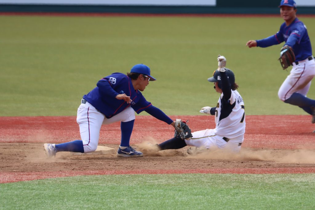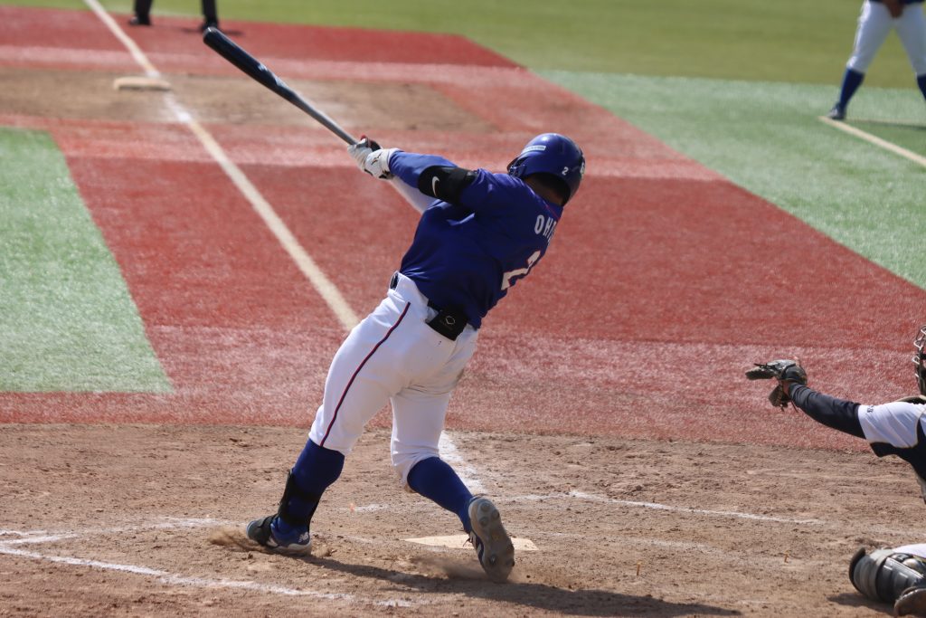 2本のヒットで善戦した10 長南外野手(写真 左)。