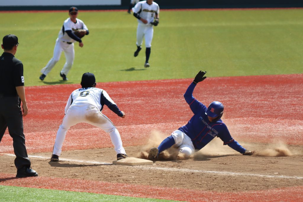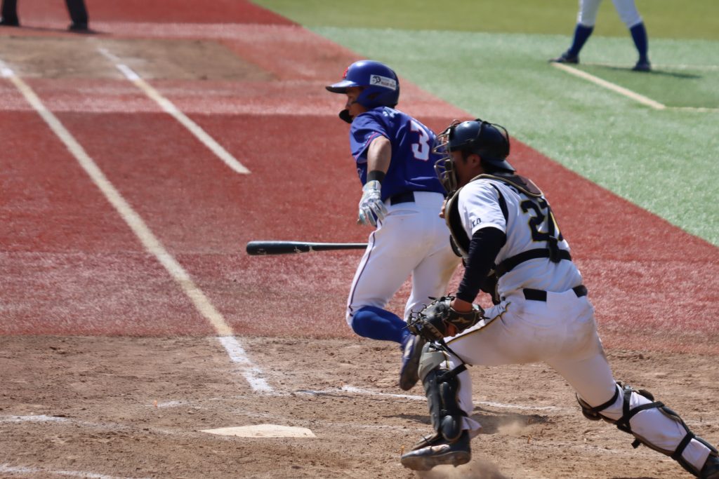 阿保内野手のセンターフライ後、二塁走者の中川捕手が三塁へ。2死三塁